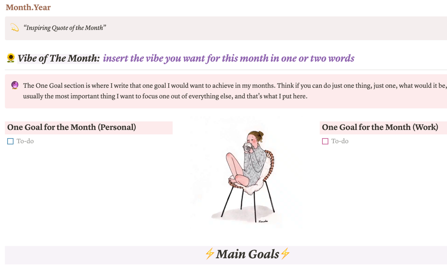 A Free Notion Monthly Planner to help you plan every month in an easy and simplified way.